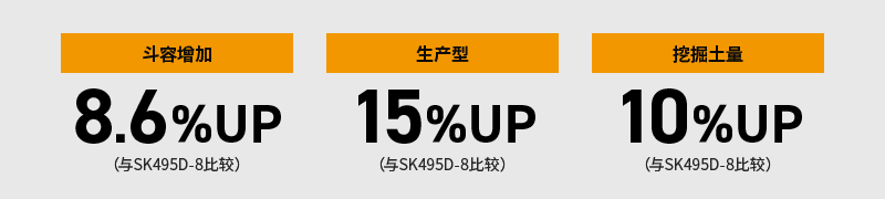 通過提高耐久性,完善挖斗形狀等大大提高了挖掘能力和生產效率。那么,升級后的SK495D實力到底如何呢?