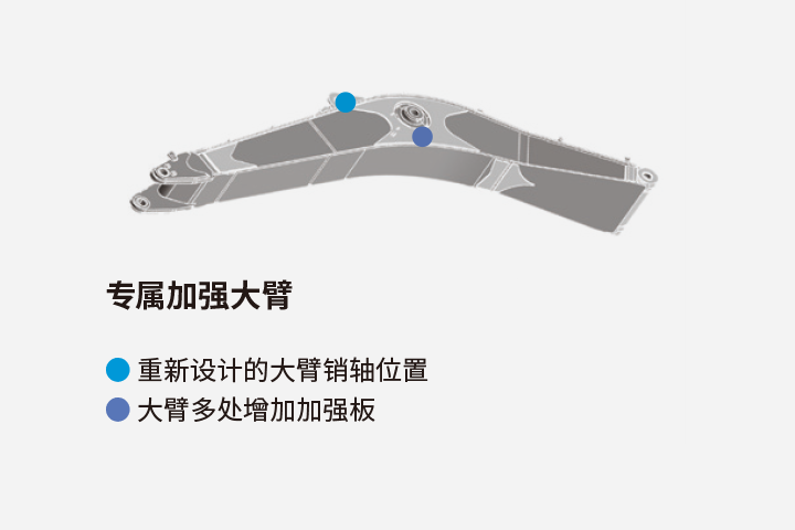 大臂多處增加加強板,小臂設計構造強化,小臂多處板厚增加。